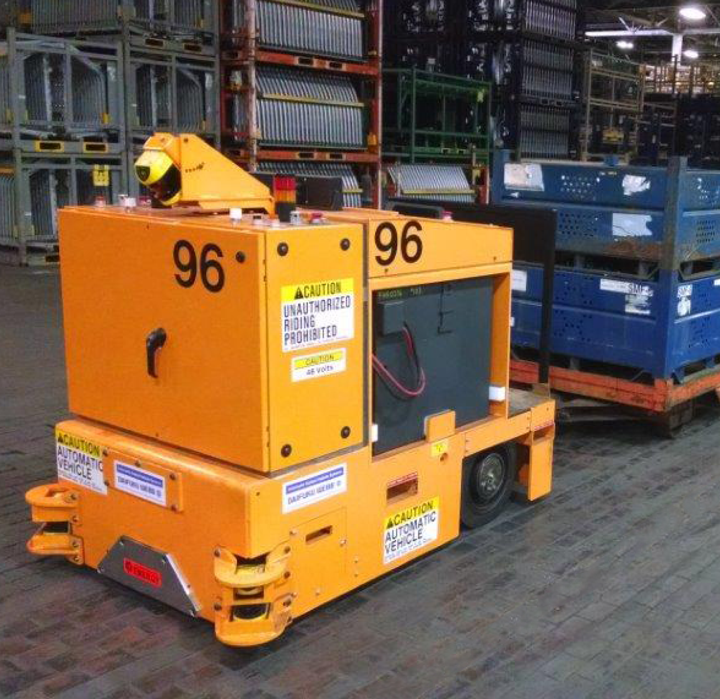 The Model M40K-T is a tugger vehicle capable of automatic or manual driving mode, when the need for human interaction is required. With a capacity of 40,000 lbs (18,200 kg) the M40K-T makes it one of the most powerful AGV towing options available. Easily switch between manual and automatic modes of operation.